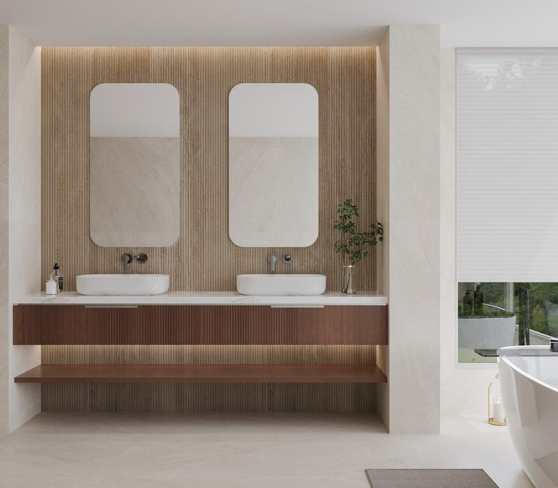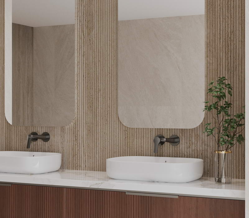 Celebrating the craftsmanship of majolica, Crogiolo Lume transforms porcelain stoneware into a glossy and vibrant material where color takes center stage. Alongside the iconic 6x24 cm format, the 10x10 cm size and the 3D Dew structure, featuring floral reliefs and dynamic reflections, enrich the range. The existing shades are available in both formats, with glossy surfaces, straight edges, and deep chromatic intensity. Ideal for harmonious combinations or bold contrasts, in residential and contract spaces.